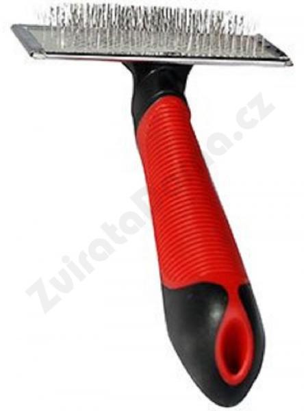 Kartáč s gumovou protiskluzovou rukojetí a extra měkkými drátěnými štětinami. Odstraňuje odumřelé chlupy, špínu a srst ponechává hedvábnou a lesklou. Je velmi vhodný především v období přesrstění.