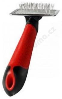 Kartáč s gumovou protiskluzovou rukojetí a extra měkkými drátěnými štětinami. Odstraňuje odumřelé chlupy, špínu a srst ponechává hedvábnou a lesklou. Je velmi vhodný především v období přesrstění.