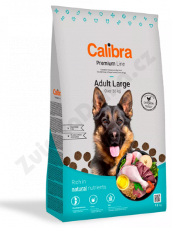 Calibra Dog Premium Adult Large je kuřecí receptura pro dospělé psy velkých plemen nad 30kg. Jedná se o vysoce kvalitní kompletní suché krmivo pro všechny psí mazlíčky. Nabízí vyvážený poměr všech potřebných živin, vitamínů, minerálů či stopových prvků tak, aby plně zabezpečily všechny výživové nároky zdravého pejska.