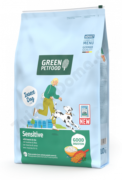 Dobře stravitelné, kompletní krmivo pro psy s proteiny (hmyzem) a rýží, vhodné jako dietní krmivo pro citlivé jedince, s mastnými kyselinami, vitamíny E & C, inulinem a kvasnicemi