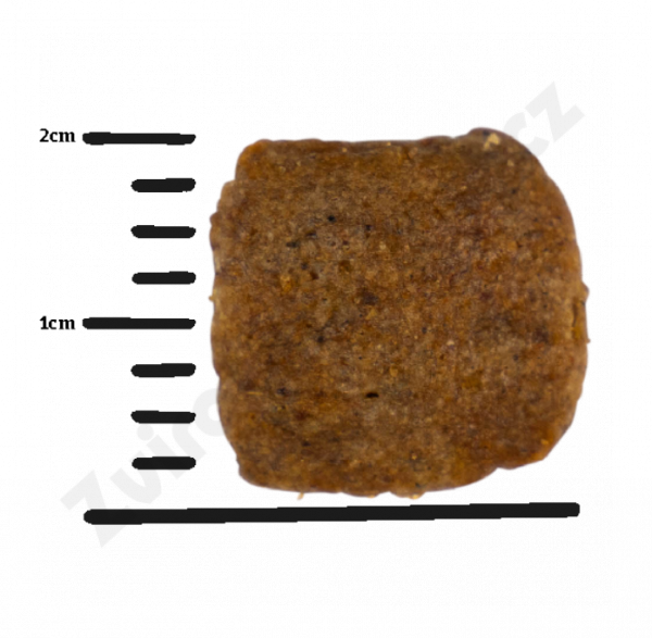 Nutriční doplňkové látky v kg: vitamín A 16.000I.E., vitamín D3 1.200I.E:, vitamín E 130mg, vitamín C 100mg, vitamín B1 10mg, vitamín B2 15mg, vitamín B6 15mg, vitamín B12 70mcg, niacin 60mg, kyselina pantotenová 40mg, kyselina listová 4mg, L-karnitin 250mg, taurin 1mg, biotin 600mcg