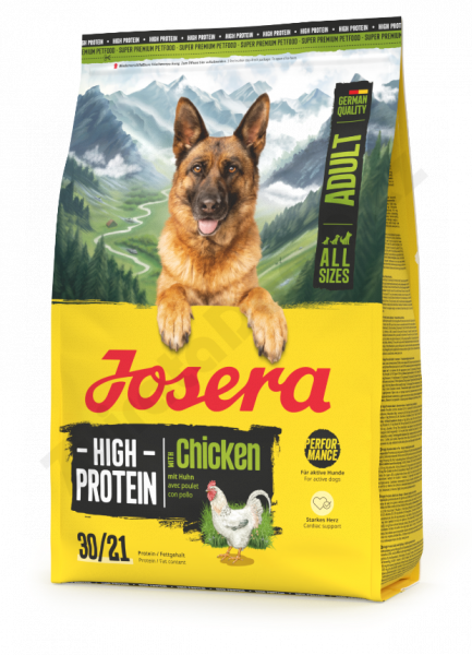 Vysoký obsah bílkovin, vysoký obsah energie, snadno stravitelné a lahodné – to je naše Josera High Protein Chicken! Toto bezlepkové krmivo pro psy bylo speciálně vyvinuto pro velmi aktivní čtyřnohé přátele a obsahuje vysoký podíl hodnotných bílkovin. Je ideální pro všechny, kteří se věnují psím sportům nebo jsou používáni jako pracovní či chovní psi a každý den podávají vysoké výkony.