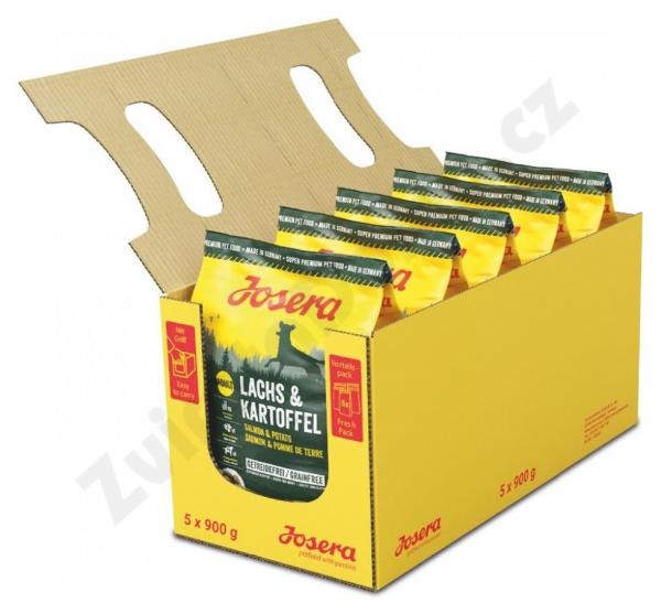 - S 19% sušeného lososa jako jediného zdroje bílkovin (odpovídá asi 65g čerstvého masa na 100g suchého krmiva)