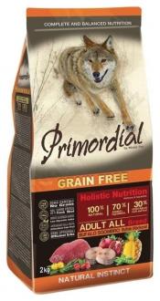 Složení: čerstvá makrela 35%, sušené buvolí maso 18%, hrášek, brambory, kuřecí tuk 9%, bob, lněné semínko 2%, sušená dužnina řepy, kvasnice, prášek z mořské řasy 0,3%, oligofruktóza 0,2%, kvasnicový produkt 0,2%, mojave yucca 0,03%, prášek z kořene pampelišky Taraxacum officinale W. 0,02%, sušené granátové jablko Punica granatum 0,02%, sušený ananas Ananas sativus L. 0,02%, sušený plod šípku Rosa Canina L.R., Pendulina L. 0,002%, glukosamin, chondroitin-sulfát, extrakt z rozmarýnu