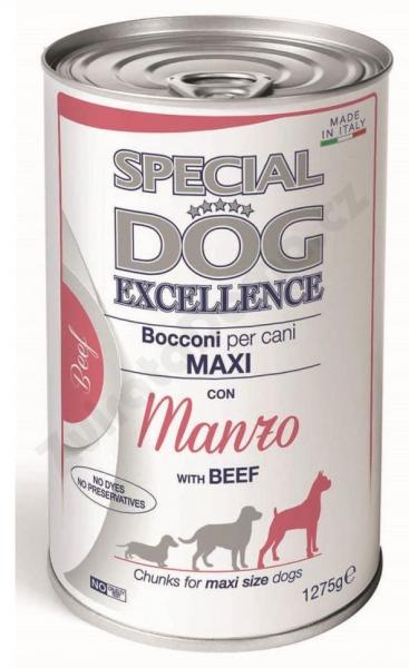 Složení: maso a masné deriváty 45% (hovězí 14%), obiloviny, vejce a vaječné výrobky, minerální látky