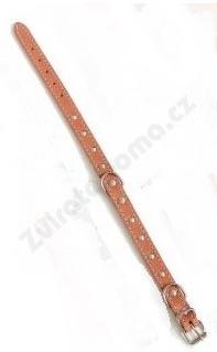 Kožený obojek zdobený světle hnědý 1×26cm AKCE
