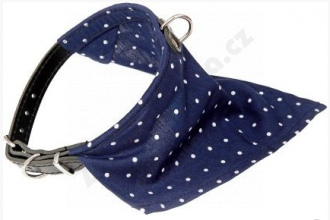 Hladký kožený obojek je vyroben z kvalitní kůže, pro pevnost je obšitý nití do barvy. Je vybaven svařovanými déčky, tak dosahuje maximální pevnosti. Jeho ozdobou je bavlněný šátek v různém designu.