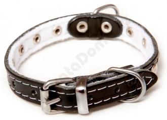 Kožený obojek je vyroben z pevné kůže, podšitý filcem, zdobený nýty, prošitý nití do barvy. Pro pevnost a variabilitu je vybaven dvěma svařovanými déčky.