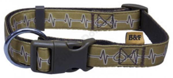 Obojek z popruhu s motivem EKG je velmi měkký a příjemný. Zapínání na plastovou přezku, snadno nastavitelný obvod. Součástí je svařované kovové déčko pro připnutí vodítka.