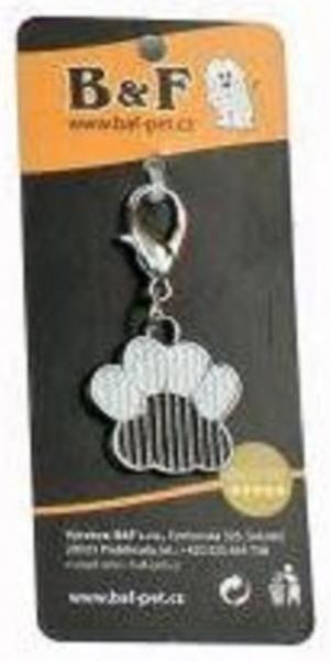 Přívěsek ve tvaru tlapky. Ozdoba určena na obojek, nebo kamkoli budete chtít. Je vyroben z kvalitního materiálu, neobsahuje nikl. K zamezení nežádoucích změn (změny barvy kovu, zbarvení srsti), docílíte tím, že přívěsek nepřijde do kontaktu s vodou.