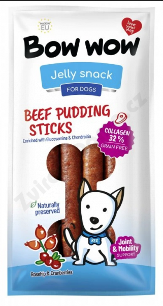 Složení v kg: hovězí klihovka, hovězí kolagen 32%, rýže, maso a živočišné produkty, hrách, hovězí 0,24%, minerální látky, šípek 80mg, brusinky 80mg, glukosamin 80mg, chondroitin 20mg