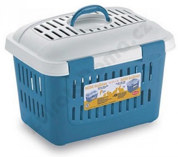Přepravní box je vybaven praktickou rukojetí a odklopným horním víkem. Početné otvory na víku a na bočních stěnách zaručují správný přívod vzduchu. Přepravku je možné nést za držadla, nebo s pomocí pevného popruhu přes rameno. Přepravka má klip pro bezpečné uzavření.