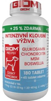 Pokud se vyskytuje u psa horší vstávání, kulhání nebo jiná bolest pohybového aparátu, je vhodnější kombinovat tento výrobek s výrobkem GIOM Akutní pohybové potíže.